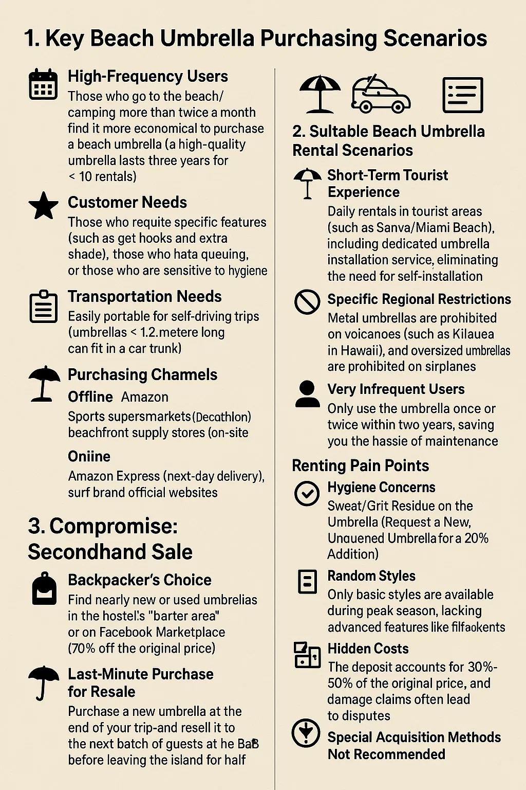 2. Escenarios de alquiler de paraguas de playa adecuados