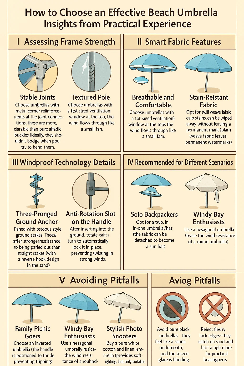 Estos son los puntos clave para elegir un producto verdaderamente eficaz. sombrilla de playa , explicado con experiencia práctica: